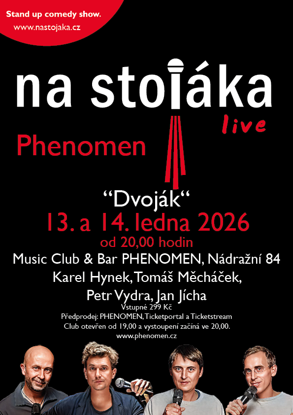 PHENOMEN si Vás dovoluje pozvat na unikátní večer nesoucí název NA STOJÁKA. Oblíbená stand-up comedy z televizních obrazovek naživo u nás v klubu. Přinášíme Vám nové vydání jedinečné a neotřelé zábavy v kombinaci s výbornými drinky a skvělým jídlem!