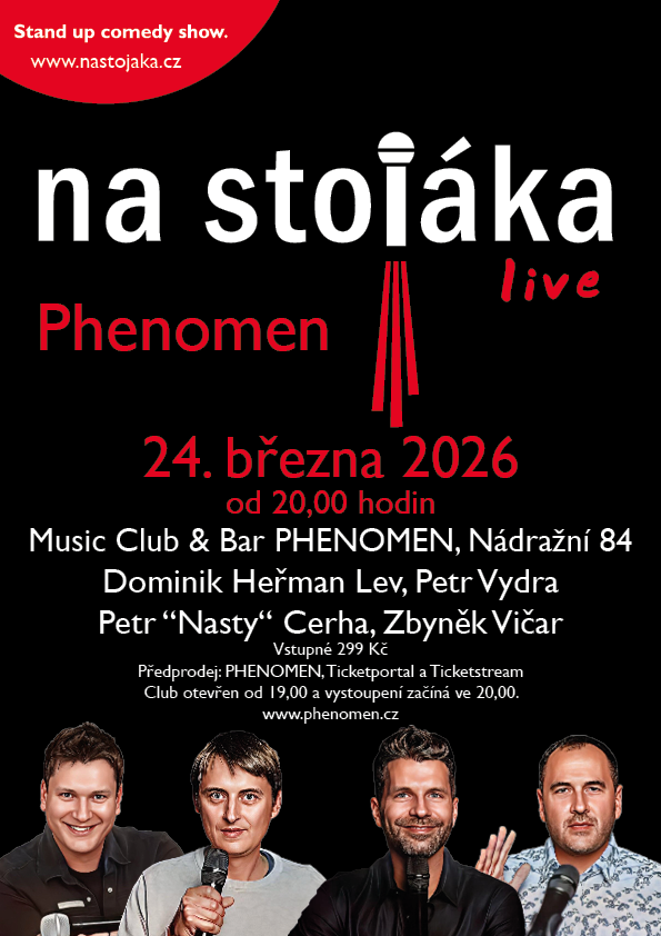PHENOMEN si Vás dovoluje pozvat na unikátní večer nesoucí název NA STOJÁKA. Oblíbená stand-up comedy z televizních obrazovek naživo u nás v klubu. Přinášíme Vám nové vydání jedinečné a neotřelé zábavy v kombinaci s výbornými drinky a skvělým jídlem!